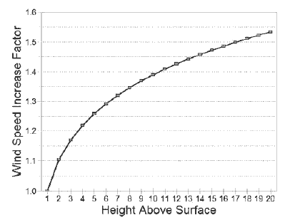 the surface, the windspeed at 20 metres height can